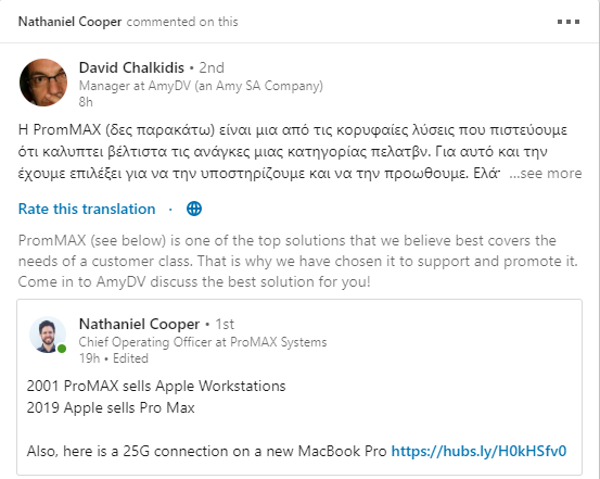 Our leadership team laughed because back in 2001, we were selling Apple products, fast forward to 2019 and apparently they decided it was time to return the favor and sell ProMAX products.